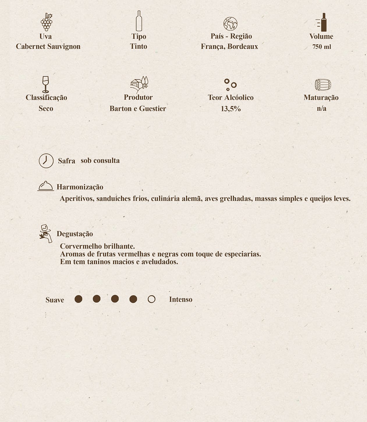 Cabernet Sauvignon, tinto, França.